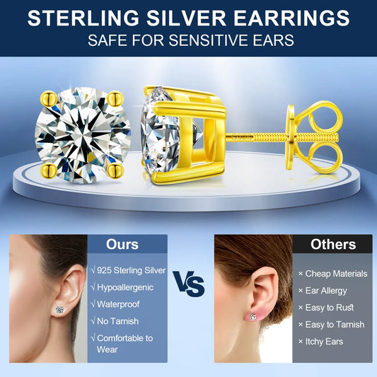 18 K Gold Plated Golden Radiance Moissanite Stud Earrings; 1 - 6 ct, D VVS1