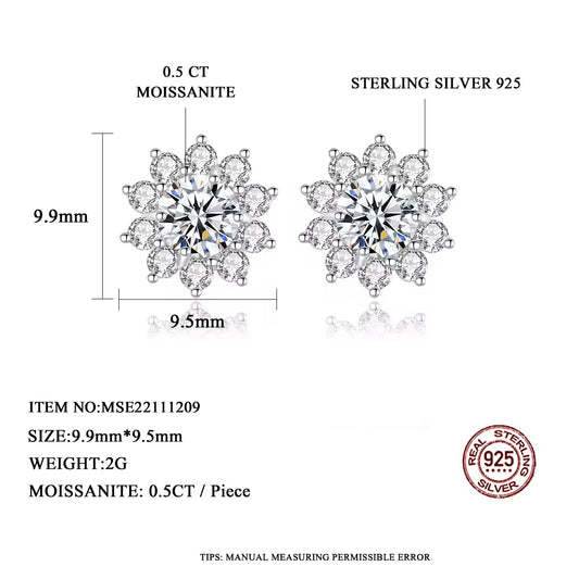 Snowflake Sparkle Round Silver Moissanite Pendant and Earrings