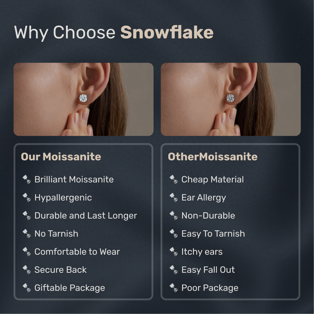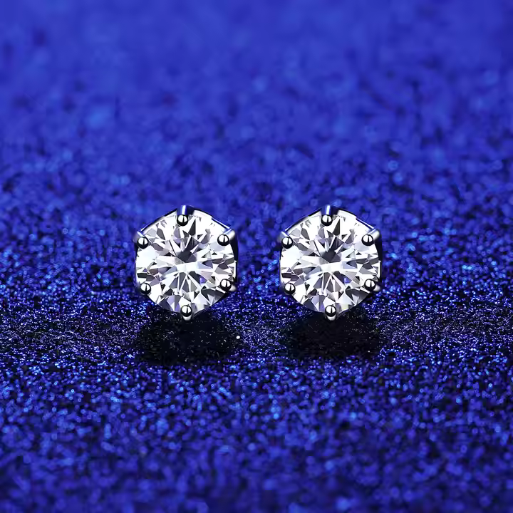 These unique hexagonal moissanite studs feature radiant GRA-certified stones set in sleek silver. With their modern geometric design, they add a touch of contemporary elegance and sparkle to any look. Perfect for daily wear or special occasions.