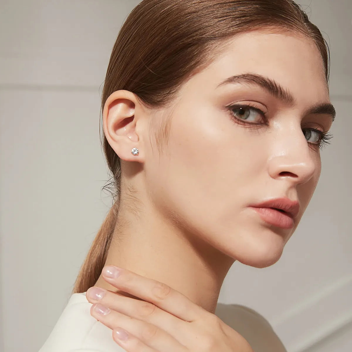 Zircon Korean Earrings for Women & Girls, Single Round Cubic Zirconia, Silver Stud Earrings